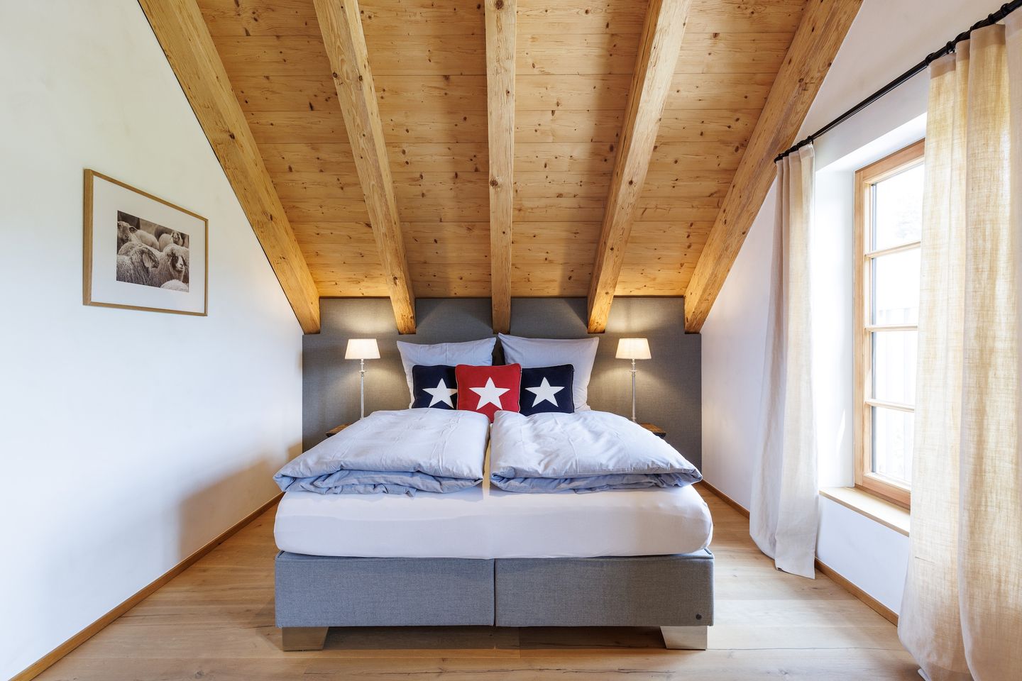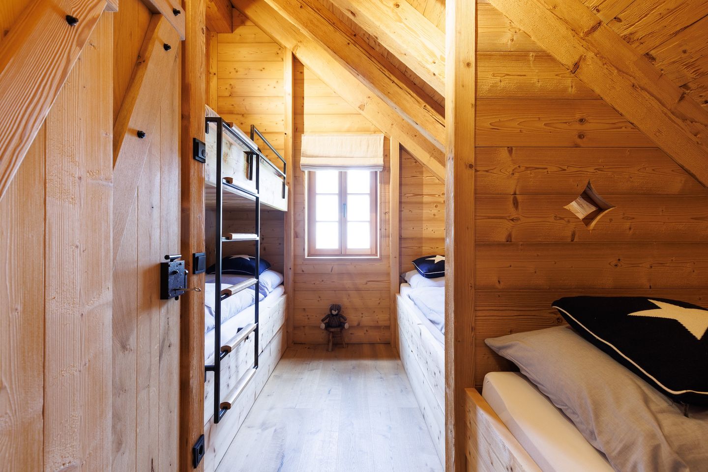 Die drei Schlafzimmer der Romantikhütte bieten einen kuscheligen und behaglichen Rückzugsort. Für einen erholsamen Schlaf ist hier bestens gesorgt. Hier gibt es zwei große Schlafzimmer mit hochwertigen Boxspring-Doppelbetten. In der urigen Schlafkammer unter dem Dach finden sie weitere Schlafmöglichkeiten für bis zu 4 Personen. Die mit duftendem Fichtenholz ausgekleidete Kammer beherbergt 2 Einzelbetten und ein Stockbett mit hochwertigen Matratzen, Daunendecken und vielen gemütlichen Kissen für eine erholsame Nachtruhe.